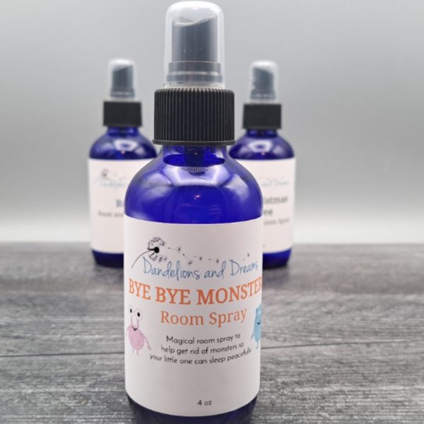 Shake well and spray all around the room, especially in the places where monsters tend to hide, like under the bed and in the closet. Be sure to spray your pillows while you’re at it! Can also be sprayed on your bedding or pajamas.