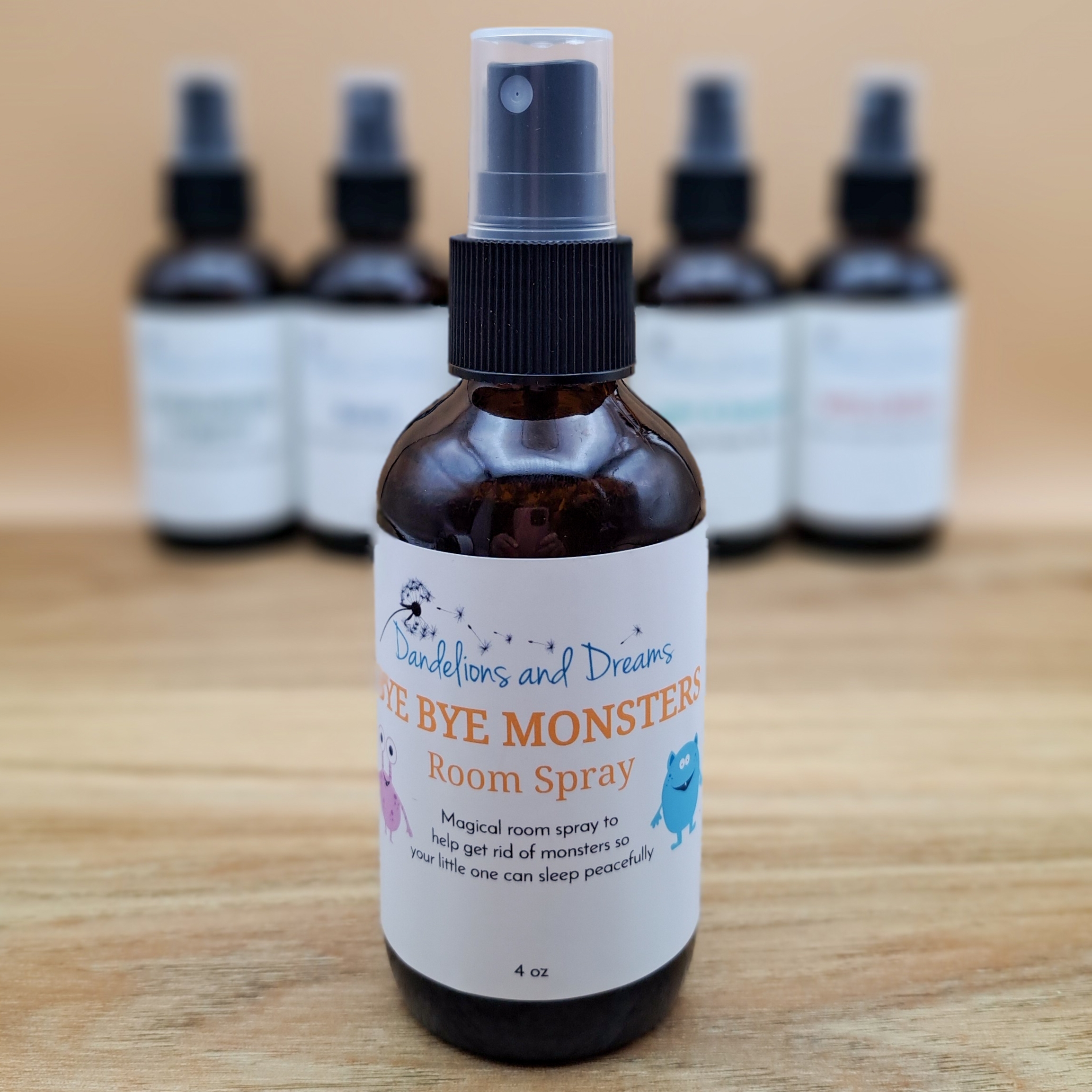 This room and linen spray contains a calming essential oil blend to help your little one (and you!) fall asleep faster and stay asleep longer. You can use it to help ease little ones minds by spraying to help rid the room of monsters and bedtime fears, or just as a bed time room spray to help kids and adults more easily fall asleep.
