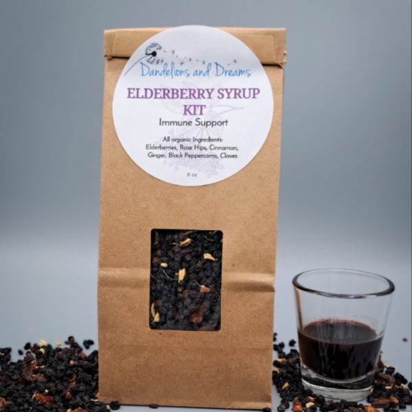 Elderberry is an amazing herb that has been used for hundreds of years. It's an antioxidant, high in vitamin C, and has been shown to prevent viruses from being able to replicate. It is an immune tonic, both stimulating and strengthening to your immune system. And did we mention it's delicious?? Elderberry syrup kit contains all the herbs you need to make your own elderberry syrup, you just supply water and honey (or another sweetener). Making your own syrup not only helps you to control the ingredients in your syrup (we use all organic herbs and recommend local honey- no fillers, or icky ingredients here), but it is also more cost effective than buying the premade syrup at the store. This kit contains organic elderberries along with cinnamon, ginger and cloves. Rose hips are added for extra vitamin C, and black pepper helps your body to better absorb the nutrients in the other ingredients. Each kit comes with directions for how to make the syrup and recommendations on how to take it. The 6 oz kit will make about 32 oz of syrup. Ingredients: *Elderberries, *Rose Hips, *Cinnamon, *Ginger, *Black Peppercorns, *Clove *Organic or local ingredients