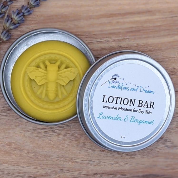 Our ultra moisturizing lotion bars are made with skin nourishing organic butters and oils. They use the warmth of your body to melt into your skin leaving it moisturized and feeling luxurious. These bars are great for use on dry hands as well as heels and elbows!